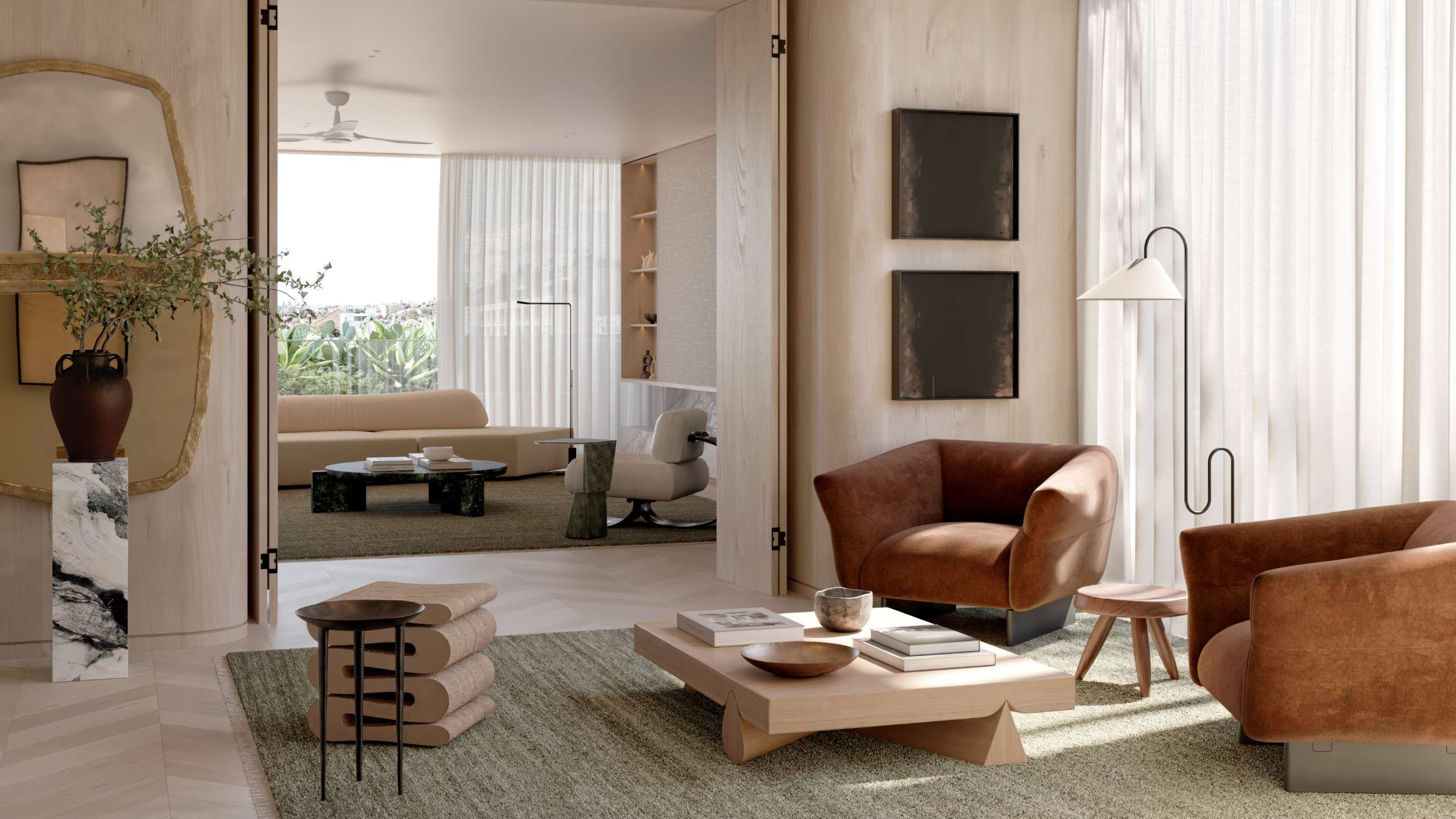 Moving through your penthouse, its many layers unfurl, revealing a highly considered procession of rooms and spaces. Your oasis gallery creates not only a magical green arrival, but thoughtfully partitions your generous public and private wings. Circulation and flow feel effortless. Seamless living, dining and family rooms* provide versatile options for comfort, solitude and generous gatherings to suit your mood and lifestyle. A home as expansive, liberating and life-enhancing as the beach itself.